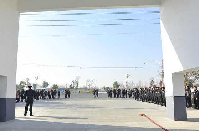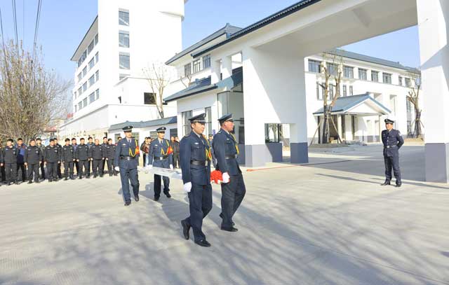 雖然室外氣溫格外寒冷,但這里卻充滿了春天的氣息。上午9時50分,4名禮儀保安抬著一塊披著紅綢的標牌, 邁著整齊的步伐走向公司大門,9時58分,江蘇省淮安市保安服務總公司標牌緩緩地、平穩(wěn)地掛了起來,現(xiàn)場響起陣陣鞭炮聲和熱烈的掌聲,大家共同為總公司新址掛牌而歡欣鼓舞。