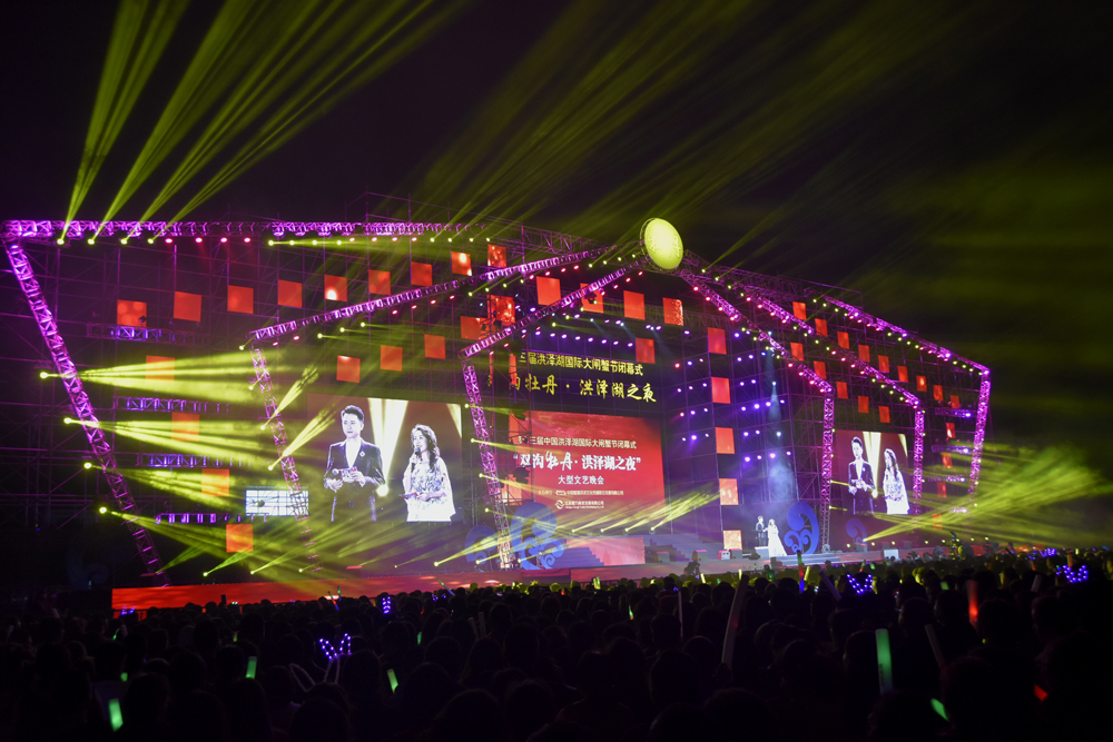 2018年10月28日晚,第十三屆中國(guó)洪澤湖國(guó)際大閘蟹節(jié)閉幕式文藝晚會(huì)在洪澤區(qū)外國(guó)語(yǔ)中學(xué)體育場(chǎng)舉行,晚會(huì)邀請(qǐng)了羅志祥、張韶涵、阿杜、溫嵐等名星登臺(tái)演出,有12000余名觀眾進(jìn)場(chǎng)觀看,總公司承擔(dān)了文藝晚會(huì)的整體安保工作。