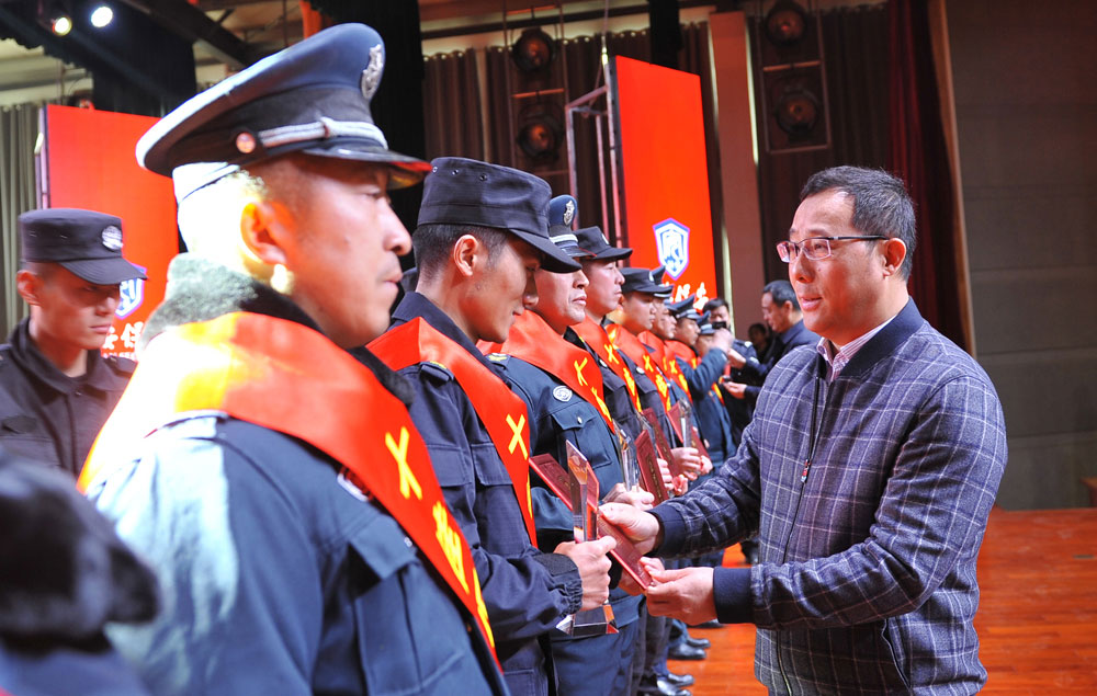 2019年3月3日上午,總公司在二樓報(bào)告廳隆重召開2018年度工作總結(jié)表彰大會(huì)。國(guó)聯(lián)集團(tuán)湯正明董事長(zhǎng)、辦公室孫國(guó)庭主任出席會(huì)議;總公司黨總支成員和各部門負(fù)責(zé)人;市區(qū)押運(yùn)員和駐縣押運(yùn)員代表;保安分隊(duì)長(zhǎng)以上骨干和保安員代表;駐外分公司駐外執(zhí)勤項(xiàng)目部負(fù)責(zé)人和高級(jí)安保專業(yè)班學(xué)員等共900余名員工參加了會(huì)議。