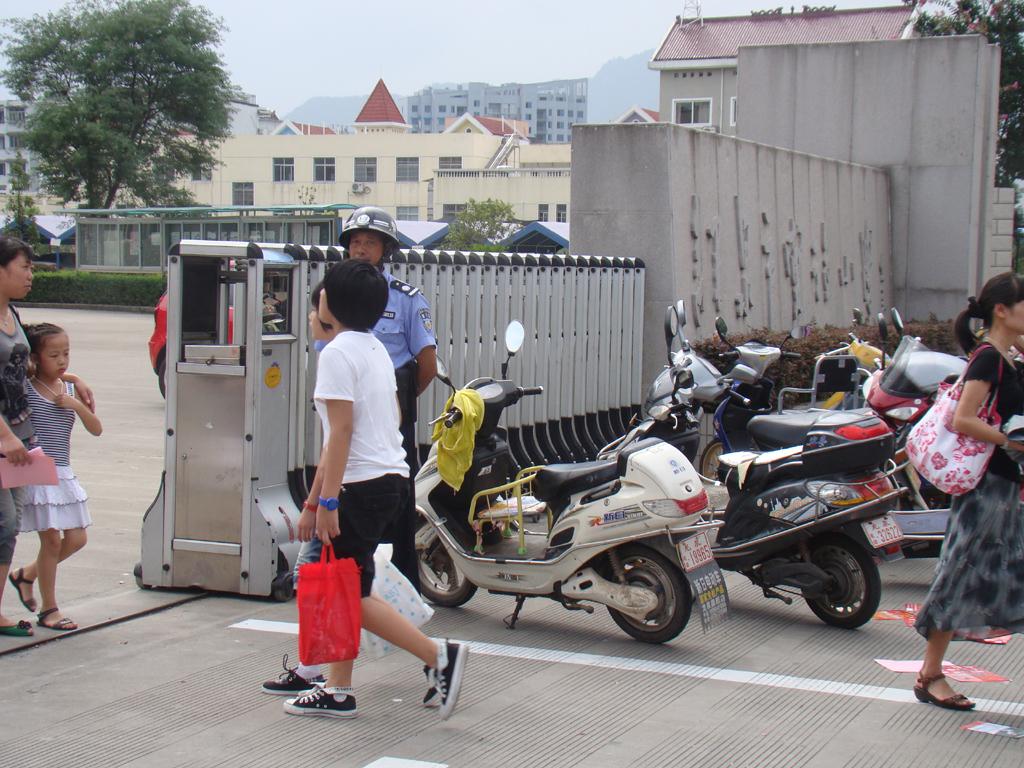 當不法歹徒準備對學(xué)生實施侵害時,校園保安就是學(xué)生們的第一道壁壘。昨天是龍泉市中小學(xué)及幼兒園開學(xué)的日子,龍泉市市區(qū)的學(xué)校的校門口都站立著兩名身材魁梧、精神抖擻的校園保安在執(zhí)勤,保證師生的安全。