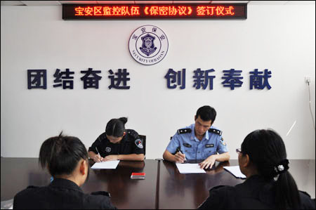 為進(jìn)一步提高監(jiān)控員保密意識(shí),落實(shí)涉密人員保密責(zé)任,確保公安工作秘密安全,9月9日下午,廣東省深圳市寶安區(qū)保安服務(wù)公司信息工程部組織全體監(jiān)控隊(duì)員在會(huì)議室進(jìn)行了保密協(xié)議簽訂儀式。信息工程部經(jīng)理張洹分別與每名監(jiān)控隊(duì)員簽訂了《保密協(xié)議書(shū)》,要求監(jiān)控員仔細(xì)閱讀和領(lǐng)會(huì)《保密協(xié)議書(shū)》的內(nèi)容,嚴(yán)格遵守保密的內(nèi)容和范圍、保密義務(wù)、保密期限和違約責(zé)任。