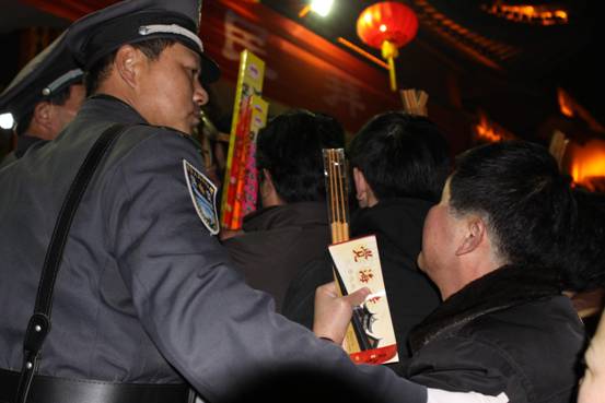 圖為:12時,香客猛增,隊員維持入寺秩序