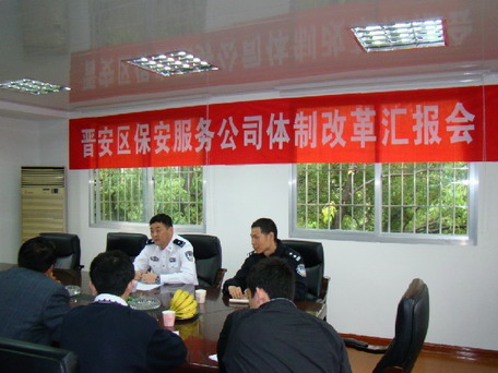 5月4日,福建省公安廳治安管理總隊副總隊長趙魯進一行到福州市晉安保安服務(wù)公司調(diào)研工作。在認真聽取了福州市公安局治安支隊副支隊長陳革和晉安區(qū)委政法委副書記、區(qū)綜治辦主任夏冬林就自招保安員監(jiān)管和晉安區(qū)保安企業(yè)改制工作情況匯報后,趙副總隊長強調(diào):一是保安企業(yè)和保安隊伍不能脫離公安機關(guān)主導(dǎo)和監(jiān)管。福州市根據(jù)保安條例精神,結(jié)合本地實際,選擇晉安區(qū)保安服務(wù)公司作為保安企業(yè)改制的試點單位,對現(xiàn)有保安企業(yè)如何改制進行了有益的探索。保安企業(yè)改制必須依法進行,堅持公安機關(guān)的主導(dǎo),保安企業(yè)和保安隊伍不能脫離公安機關(guān)監(jiān)管,確保這支隊伍朝著正確健康方向發(fā)展;二是做強做大保安隊伍。要充分認識保安服務(wù)市場國際化趨勢和保安工作所面臨的實際問題,充分發(fā)揮多年來保安企業(yè)先行的優(yōu)勢,大力拓展保安服務(wù)領(lǐng)域,努力提高保安服務(wù)科技含量和服務(wù)質(zhì)量,讓現(xiàn)有保安企業(yè)和保安隊伍茁壯成長,進一步做大做強國有資產(chǎn),以更加強大的競爭力迎接市場的開放。三要加強自招保安員管理。要加強自招單位保安工作和保安隊伍規(guī)范化建設(shè),加強物業(yè)保安等自招保安員日常監(jiān)督管理工作,科學(xué)合理地安排保安員考試發(fā)證工作,加快保安員十指指紋信息的采集和審查工作。