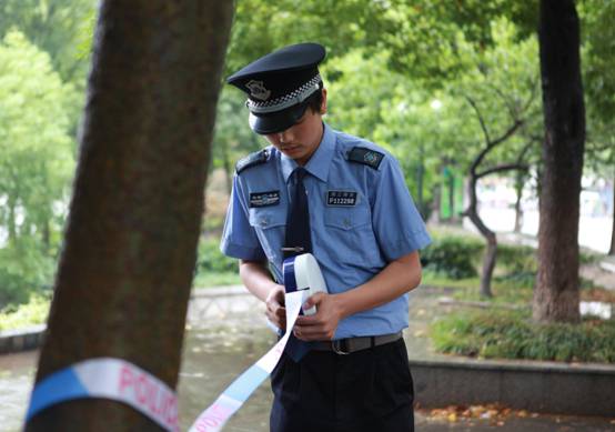 圖為:比賽結(jié)束后,保安隊員收回警戒線,保持通暢