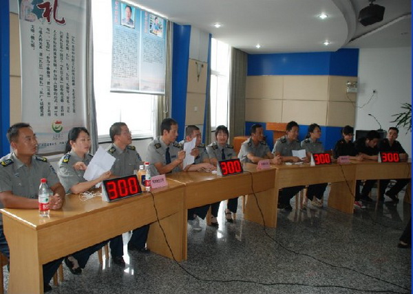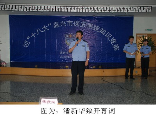 浙江省保安工作消息 為迎接黨的“十八大”順利召開,9月21日下午,浙江省嘉興市保安協(xié)會在嘉興市公安局人民警察培訓(xùn)學(xué)校舉辦了全市“保安系統(tǒng)知識競賽”。省公安廳治安總隊保安科科長、省保安協(xié)會秘書長傅志方,省公安廳治安總隊保安科壽俊杰,市保安協(xié)會常務(wù)副會長兼秘書長張秋榮,市保安服務(wù)公司總經(jīng)理、市保安協(xié)會副會長皇甫玉明等領(lǐng)導(dǎo)蒞臨現(xiàn)場觀摩指導(dǎo)。嘉興市公安局治安支隊政委潘新華和治安支隊副支隊長朱忠華分別致了比賽開幕詞和閉幕詞。由市局特警支隊政委陸永清等四人組成的評委團對比賽全程進行了監(jiān)督、評判。
