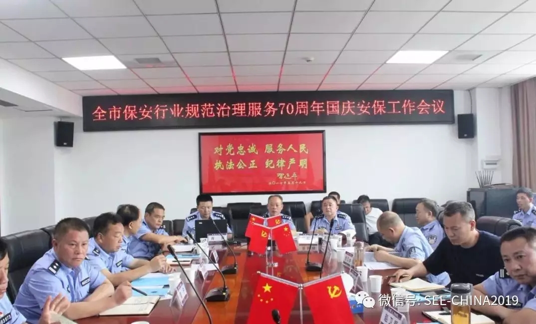 會上,邵陽市公安局治安支隊保安大隊大隊長肖勇首先傳達了全省保安業(yè)務培訓會議和省廳征求《保安服務管理條例》修改意見座談會精神,對分層分步推進全市保安行業(yè)規(guī)范治理服務70周年國慶安保工作進行了具體部署。支隊副職就各自分管的治安績效評估工作予以了講評,對下半年工作進行了安排。縣市區(qū)治安大隊就保安行業(yè)規(guī)范治理工作開展和治安工作達標逐個發(fā)了言。