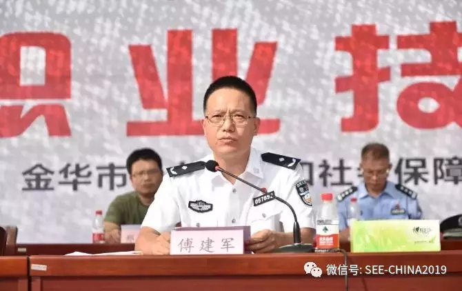 浙江省公安廳治安監(jiān)督管理總隊(duì)副總隊(duì)長(zhǎng)朱健輝,金華市公安局黨委委員、副局長(zhǎng)傅建軍,金華市人力資源和社會(huì)保障局黨組成員邵森寅出席開幕式并講話。金華市總工會(huì)副主席張永積出席開幕式。開幕式上全體保安員進(jìn)行“保安勇?lián)?dāng)·平安迎大慶”集體宣誓。