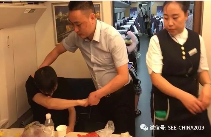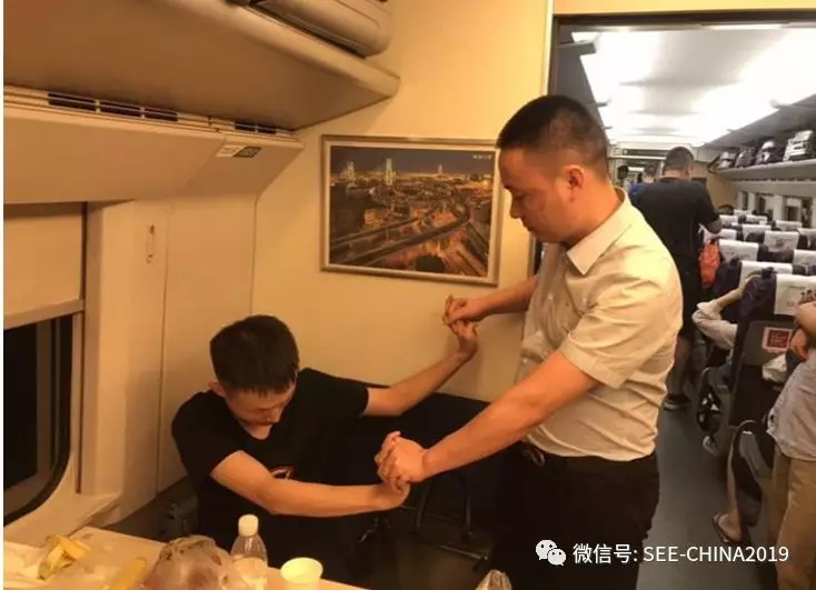 昨晚從福州南站開往溫州南站的動車D3212組列車上正在緊急廣播一位病人突發(fā)心臟病抽筋,臉色蒼白心悶疼痛,動車組乘務(wù)員廣播了3次尋救醫(yī)務(wù)乘客或其他乘客參與臨時(shí)急救,時(shí)間過去了十多分鐘,仍無一人相助,就在這個(gè)心急如焚的時(shí)刻,一位臨危不懼“見義勇為”的好人挺身而出,在短短的幾分鐘穴位按摩活動,患者已奇跡般的反過神來,如果沒有及時(shí)處理很有可能會導(dǎo)致心臟驟停的嚴(yán)重后果。當(dāng)列車長、患者夫婦及車廂內(nèi)所有人看到這有驚無險(xiǎn)的感人一幕都高興不已,大家紛紛拍手稱道。列車長為這位好心人點(diǎn)贊并問道:“如此神奇!您是什么職業(yè)的?謝謝您及時(shí)出手相救。”他終于露出了專注緊張搶救后的笑容說:“救死扶傷、保家衛(wèi)國是我的神圣職責(zé),我是軍人退伍到溫州做保安......”這種退伍不褪色“見義勇為”的精神事跡樹立了正能量,只要人人都獻(xiàn)出一點(diǎn)愛,世界將變成美好的人間。