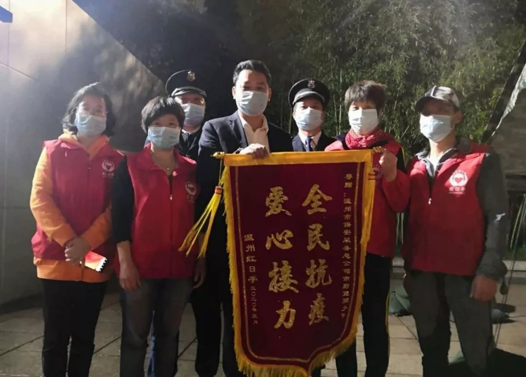 雖然捐款金額不高,但都包含著溫州保總隊員們的心意。3月28日,紅日亭為溫州??偟膼坌木栀涃浰湾\旗,錦旗上寫著“全民抗疫、愛心接力”。隊員們表示這是應該做的,在災難面前,眾志成城,守望相助,我們必將共渡難關。