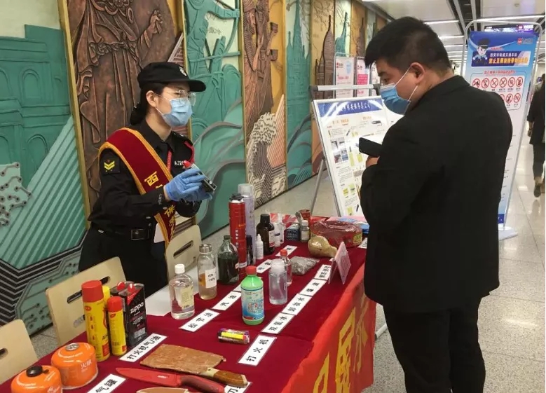 為深入貫徹落實習(xí)近平總書記的總體國家安全觀,落實國家、省級、市級反恐辦關(guān)于“切實增強全民國家安全意識,不斷提高人民群眾維護國家安全能力”為主要內(nèi)容的反恐怖宣傳教育,同時加強對疫情期間進站乘車人員的防護保障措施,保障所有出行乘客的人身及生命財產(chǎn)安全,按照西安軌道交通集團有限公司工作部署安排,結(jié)合“4·15全民國家安全教育日”和掃黑除惡宣傳,貫徹落實分公司決定在全線網(wǎng)范圍開展為期一周的反恐怖普法宣傳教育活動和疫情防控相關(guān)知識宣傳講解,4月15日,西安市保安服務(wù)總公司、西安地鐵運營分公司、公安地鐵分局韋曲南派出所在西安地鐵二號線小寨站,按照運營一中心下發(fā)的“關(guān)于反恐怖普法宣傳教育活動計劃”,開展違禁品展示宣傳專項活動的通知”,聯(lián)合開展“安全出行、共建平安和諧地鐵”,“警民牽手110違禁品宣傳”“2020年新冠疫情防控”等宣傳教育活動。