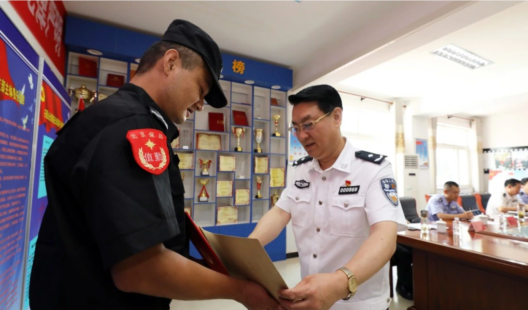 7月14日下午,北京市保安服務(wù)總公司在石景山分公司組織召開新冠肺炎疫情防控輔警安保勤務(wù)表彰會議,總公司總經(jīng)理張濤、副總經(jīng)理趙守存,石景山公安分局政委龔嘉明,總公司相關(guān)部門負(fù)責(zé)人、石景山分公司領(lǐng)導(dǎo)班子成員和立功受獎保安集體、保安員代表參加了會議,會議由趙守存副總經(jīng)理主持。