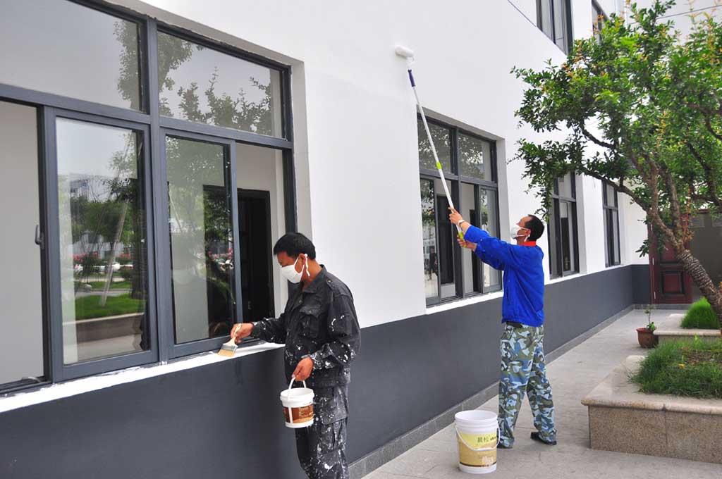 接到任務(wù)后,趙炳華、丁云清2名同志首先對所有施工現(xiàn)場進行了察看和預(yù)算,并制定了施工方案。基于押運樓是在老平房的基礎(chǔ)上翻新加層建筑,使得部分房間墻面脫落并出現(xiàn)裂縫,樓體墻面防水層破損,每逢下雨天便有雨水不同程度的滲漏,影響了辦公和生活秩序,加上公司院內(nèi)籃球架、單雙杠器材、木椅、木橋、樓前防護木等褪色和部分損壞的情況,以及剛建好的綜合活動中心二樓1100多平方米木質(zhì)地板需要進行漆化處理。面對如此工程,趙炳華、丁云清2名同志迅速作出合理安排和應(yīng)對措施,開始著手對樓體做好防水處理,同時將1至5層樓的隊員宿舍、辦公室、更衣室等所有房間1000多平方米的墻面進行打磨粉刷,并對公司剛建好的活動中心二樓1100多平方地面進行多次漆化處理,以及房屋里外設(shè)施進行了修繕。