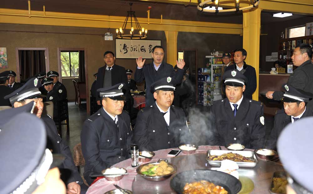 婁伯翱總經(jīng)理查看隊(duì)伍伙食情況
