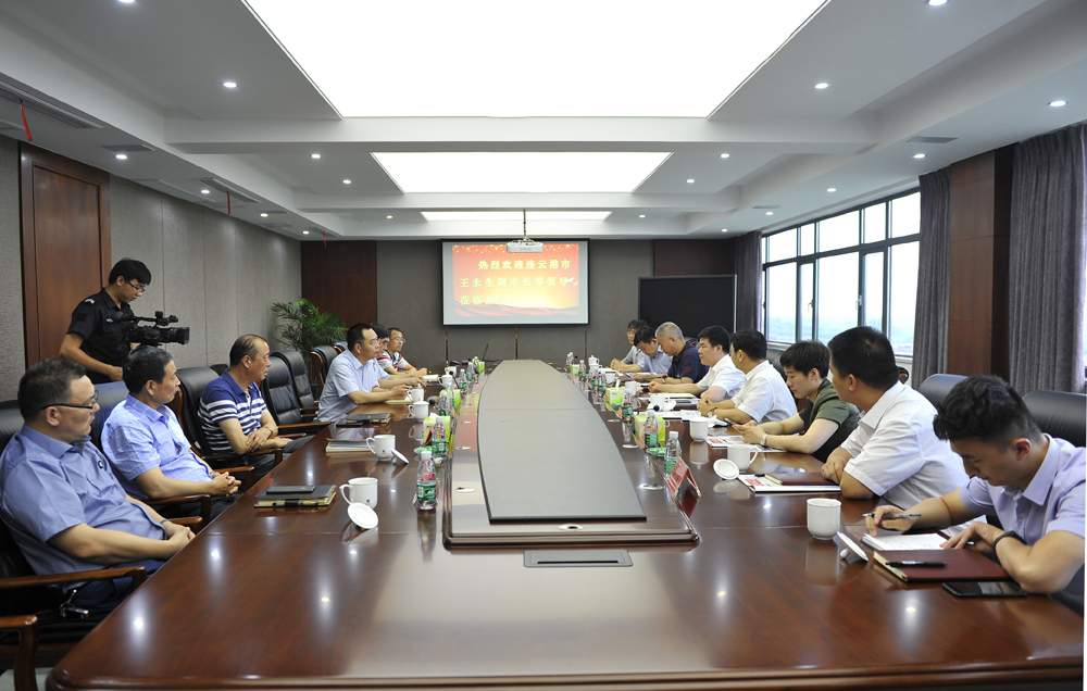 2018年7月8日,連云港市副市長(zhǎng)、公安局長(zhǎng)王永生、北京威遠(yuǎn)保安公司總經(jīng)理李濤、連云港市保安公司總經(jīng)理林松、云之約安全服務(wù)總經(jīng)理陳飛霏等領(lǐng)導(dǎo)一行7人蒞臨總公司考察交流,總公司總經(jīng)理婁伯翱、書(shū)記吳淮甫帶領(lǐng)人防中心、押運(yùn)中心、技防公司、科技公司等部門(mén)負(fù)責(zé)人參與座談交流。