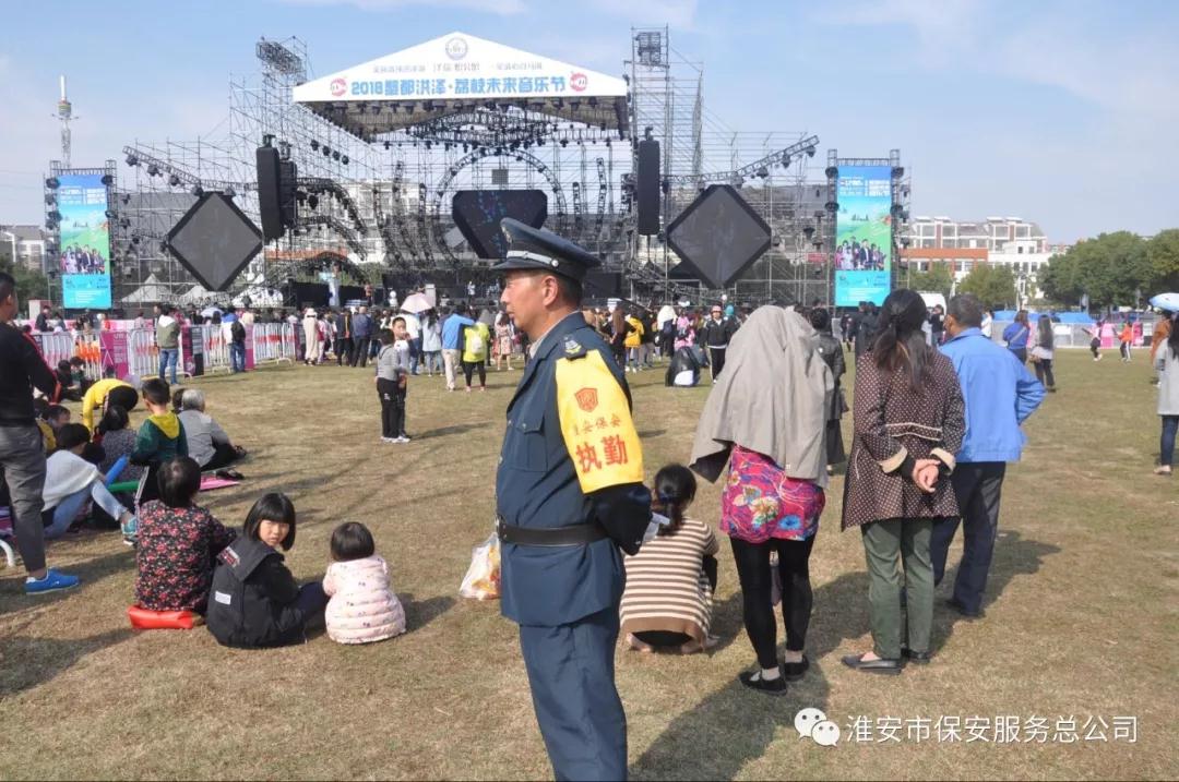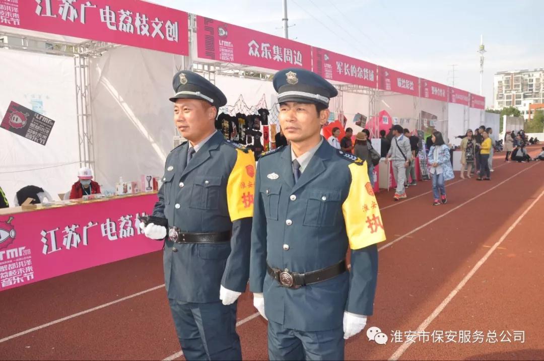 總公司派出130余名保安力量,承擔音樂節(jié)的預檢票口、檢票口檢票、安檢、貴賓入口以及內(nèi)場和舞臺區(qū)域的管控和秩序維護等工作。此次音樂節(jié)從中午13:30開始直至21:40,執(zhí)勤時間長、人員環(huán)境復雜、工作任務艱巨??偣救朔拦芾碇行?30余名保安員于中午12時準時進入預定崗位,直至音樂節(jié)結束,長達8個小時期間,淮安保安人堅守崗位、認真履職。黃紅相間“淮安保安”靚麗的臂章在各個崗位上,成為音樂節(jié)的一道亮麗風景?;窗脖0驳膰乐斪黠L,嫻熟的業(yè)務能力,文明的服務態(tài)度,得到主辦單位的肯定。