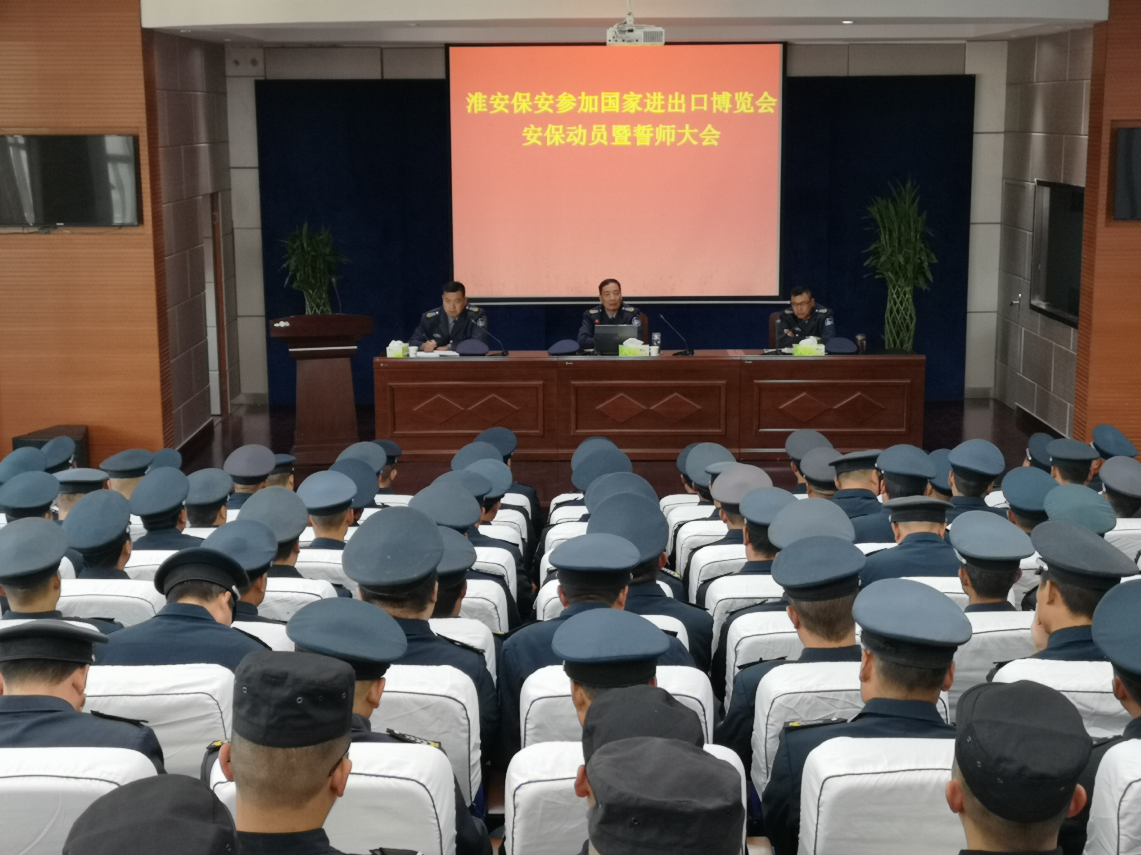 2018年10月18日上午,總公司人防中心在報告廳隆重召開進博會安保動員暨誓師大會。即將赴上海參加中國國際進口博覽會安保執(zhí)勤的150余名保安員和骨干參加了會議,人防管理中心總監(jiān)王錦春在會議上作動員部署。