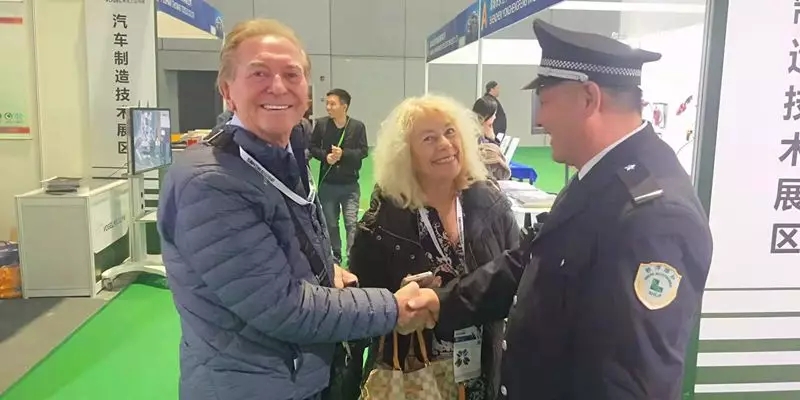 12月3日開(kāi)館當(dāng)天,隊(duì)員陳得彬在6.1號(hào)館3門巡查時(shí)拾到一部手機(jī),經(jīng)過(guò)尋找手機(jī)是兩位英國(guó)夫婦的,外國(guó)友人對(duì)陳得彬非常感謝,希望拍照紀(jì)念,臉上流露出滿意笑容。