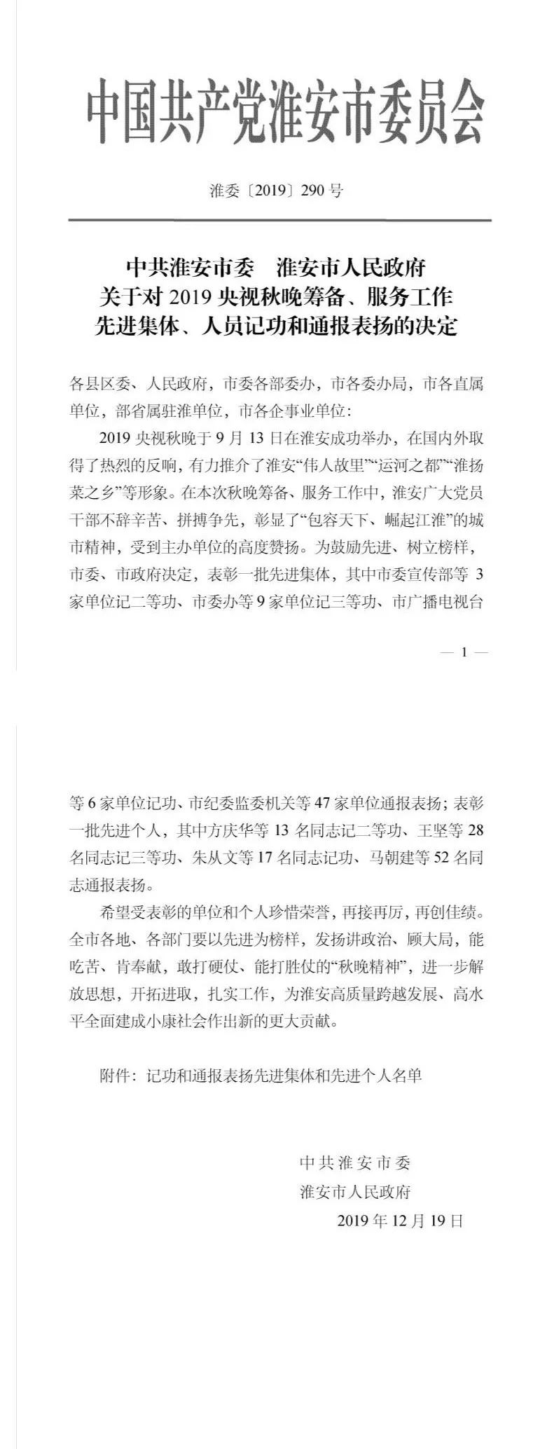 日前,淮安市委市政府發(fā)文對2019央視秋晚籌備和服務(wù)工作中涌現(xiàn)出來的先進集體和先進個人進行通報表揚,總公司獲先進集體,王廣衛(wèi)同志獲先進個人,并被通報表揚。今年9月在淮安舉辦的央視中秋晚會,舉國關(guān)注,舉世矚目,淮安保安講政治、講大局,舉全公司之力,集全公司之智,眾志成城、戮力同心、創(chuàng)新舉措、壓實責(zé)任,自8月9日起至10月9日,從晚會設(shè)備進場、舞臺搭建、彩排聯(lián)排、錄播直播直至設(shè)備拆除,累計投入安保力量8000余人次,各類高科技安保裝備20余種,保障車輛580余輛次,圓滿完成了巡邏守護、安全檢查、科技保障、搜毒搜爆、無人機管控、后勤保障等系列任務(wù),充分發(fā)揮了保安隊伍擔(dān)當(dāng)勇為、攻堅克難、敢打必勝的拼搏精神,確保了央視秋晚的成功舉辦,得到了央視導(dǎo)演組、組委會的充分肯定和市委市政府的高度好評,企業(yè)品牌形象得到了進一步提升!