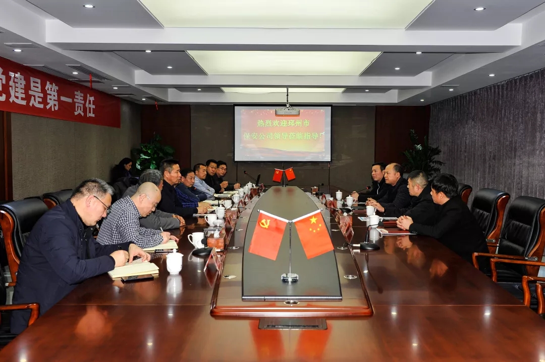 1月7日下午,邳州市保安公司總經(jīng)理周恒慶、黨支部書記席德剛、技防部負責(zé)人韓飛、辦公室主任李奎一行到訪淮安市保安服務(wù)總公司交流考察。總公司黨總支書記、總經(jīng)理趙愛忠攜主要領(lǐng)導(dǎo)以及各部門負責(zé)人參與座談交流。