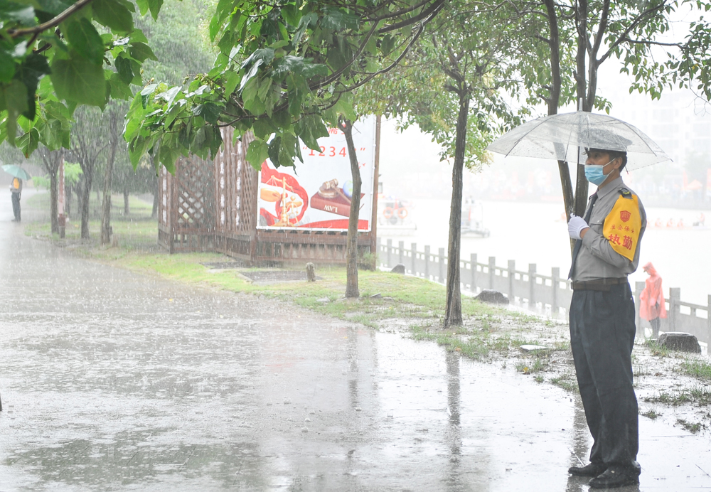 23日清晨6時(shí),總公司抽調(diào)600余名保安人員按照方案提前布崗到位,在風(fēng)雨中形成一道堅(jiān)實(shí)的人形屏障風(fēng)景線。面對(duì)肆虐的風(fēng)雨,執(zhí)行現(xiàn)場(chǎng)安保任務(wù)的隊(duì)員們始終堅(jiān)守在崗位上,有序開展安全檢查、體溫檢測(cè)、沿途守護(hù)、維持賽場(chǎng)秩序,一方面繼續(xù)抓牢抓實(shí)疫情防控,一方面認(rèn)真做好各項(xiàng)安保工作,精心保障賽事活動(dòng)安全、有序開展。